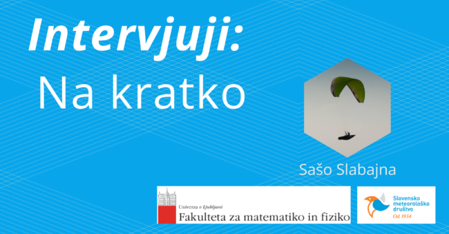 Navdušen jadralni padalec Sašo Slabajna je po zaključenem magistrskem študiju meteorologije na UL-FMF pristal na Oddelku za letalske napovedi na ARSO. Več v aprilskem intervjuju Na kratko.